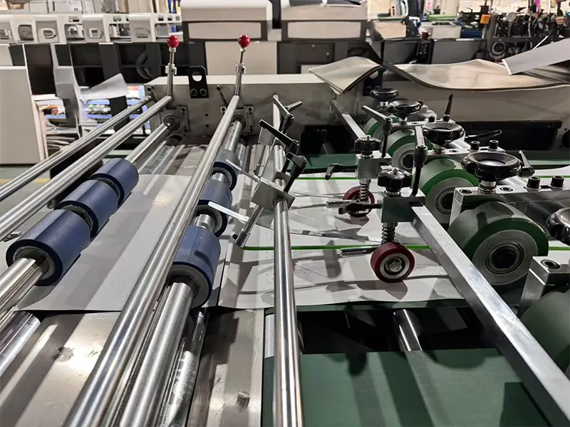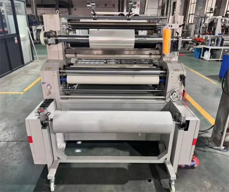 Oferecemos 5 carrinhos de rolo para entrada rápida no próximo processo de corte de papel após laminação e enrolamento (o primeiro rolo precisa ser seco por meia hora após a conclusão, e o segundo rolo pode ser laminado ao mesmo tempo). É conveniente para os trabalhadores carregarem produtos semiacabados, economizando tempo e mão de obra.