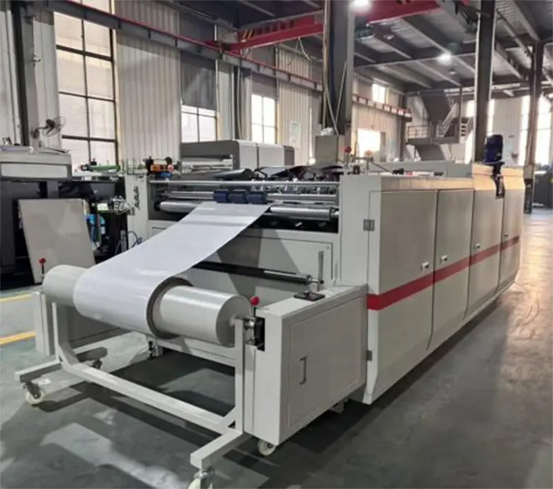 Máquina automática de laminação a frio à base de água, como dispositivo profissional para laminação de filme plástico em superfícies de papel, suas vantagens marcantes residem em: