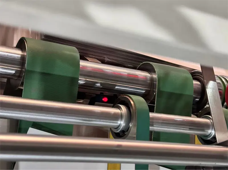 Olho elétrico de indução, detectando o comprimento do papel, se o comprimento do papel mudar, a correia irá acelerar e o defletor da máquina de recolhimento irá tombar e expulsar o papel.